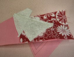 Place this piece right side up. In other words, wrong side of fabric to the back of the paper pattern.